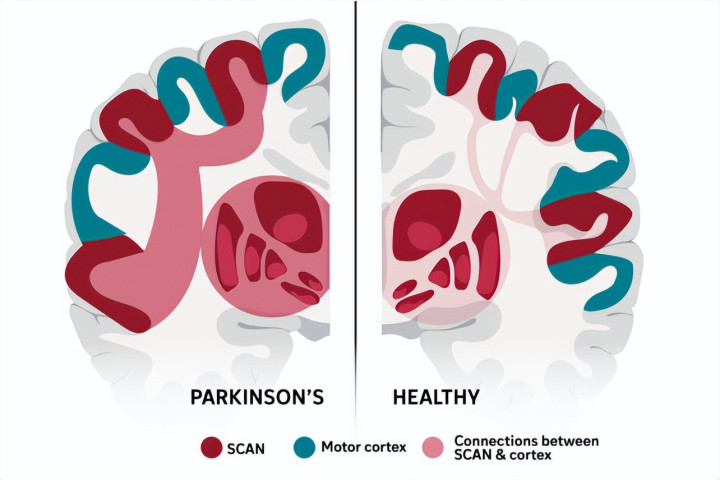 SCAN网罗在2023年头度被科学家建议时,就因其独有的位置和功能而引起怜惜。它位于中央沟沿线,与大脑皮层的传统带悟效应器区域瓜代漫衍,既蚁集念念维,也蚁集瓦解。这个网罗包含六个皮层下脑区,每一个齐与帕金森病的经典症状息息关系。当这个网罗的蚁集失衡时,震颤、僵硬、瓦解迟松弛均衡问题随之而来。